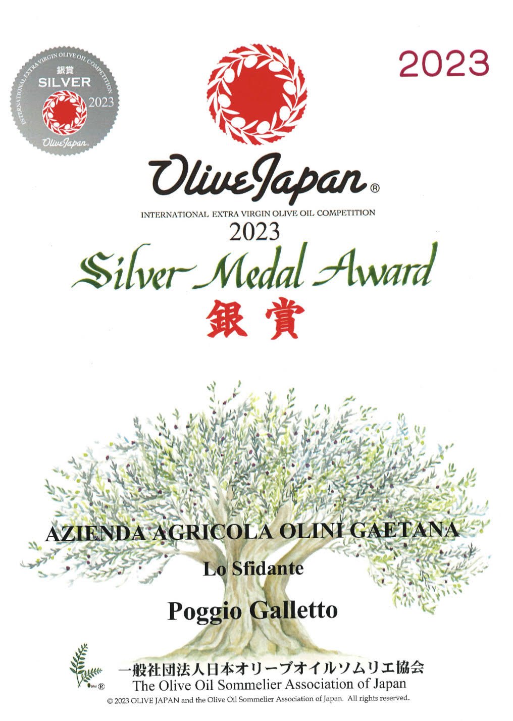 2023年5月1日、ポッジョ・ガレットがOLIVE JAPAN® 2023国際オリーブオイルコンテストで銀賞を受賞しました!